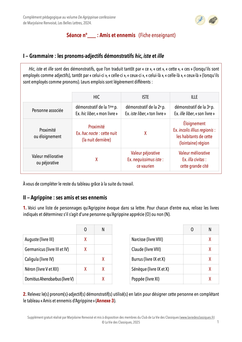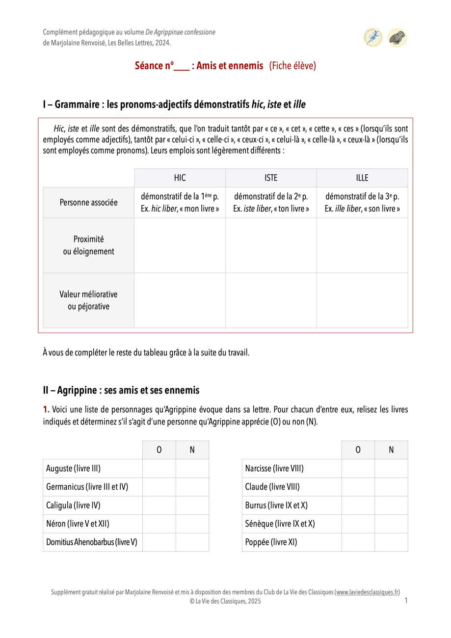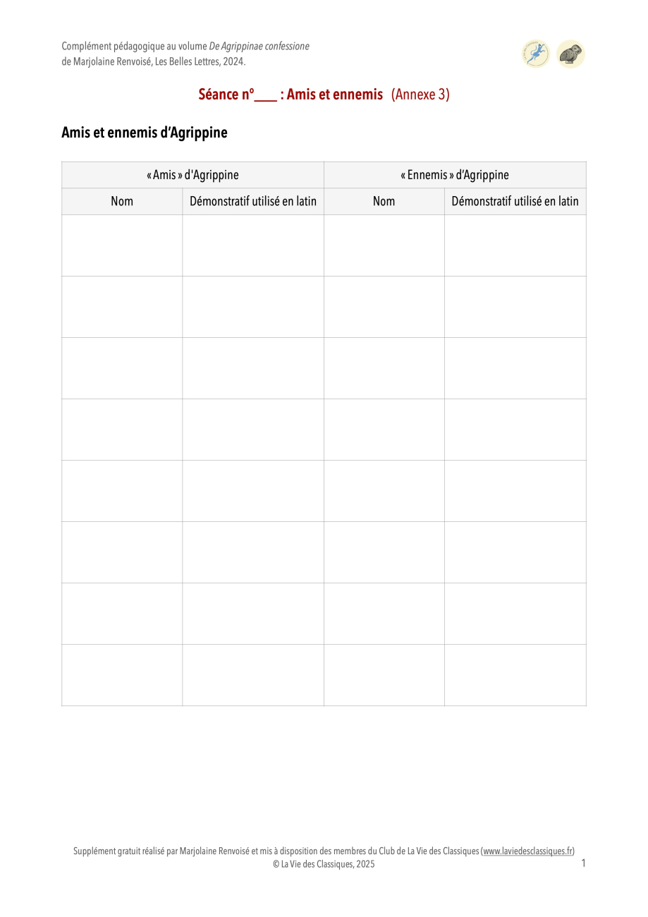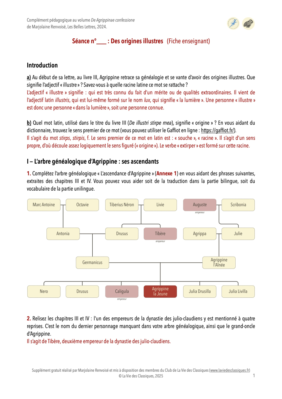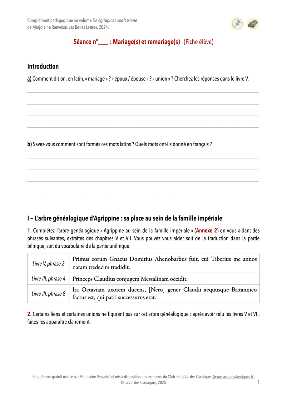 Retrouvez sur cette page trois séances pédagogiques en PDF autour du volume De Agrippinae confessione (Les Petits Latins, 2024), réalisées par Marjolaine Renvoisé, professeure agrégée de lettres classiques.