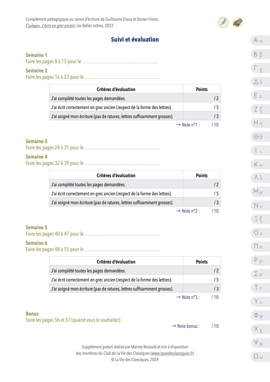 Retrouvez sur cette page des ressources pédagogiques au format PDF pour accompagner l'apprentissage de l'alphabet grec et l'utilisation du cahier d'écriture Γράφω. J'écris en grec ancien en classe.