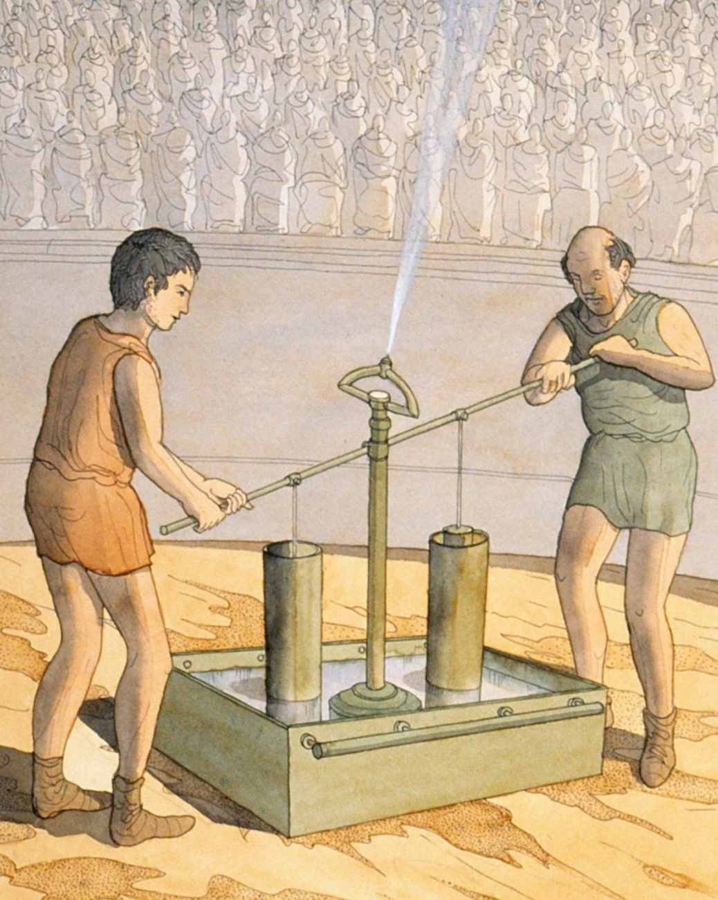 La machine à pulvériser des édifices de spectacle romains (dessin de Jean-Claude Golvin)